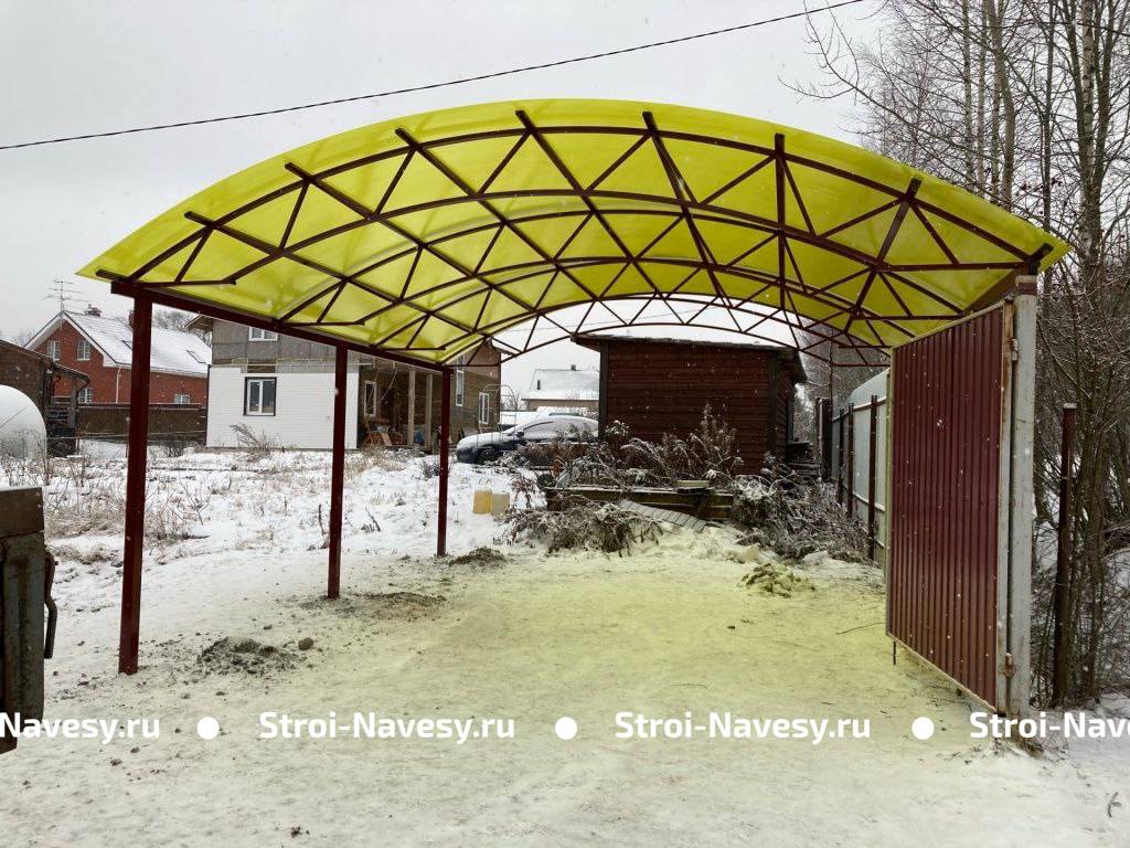 Арочный автонавес с желтым поликарбонатом на 1 машину